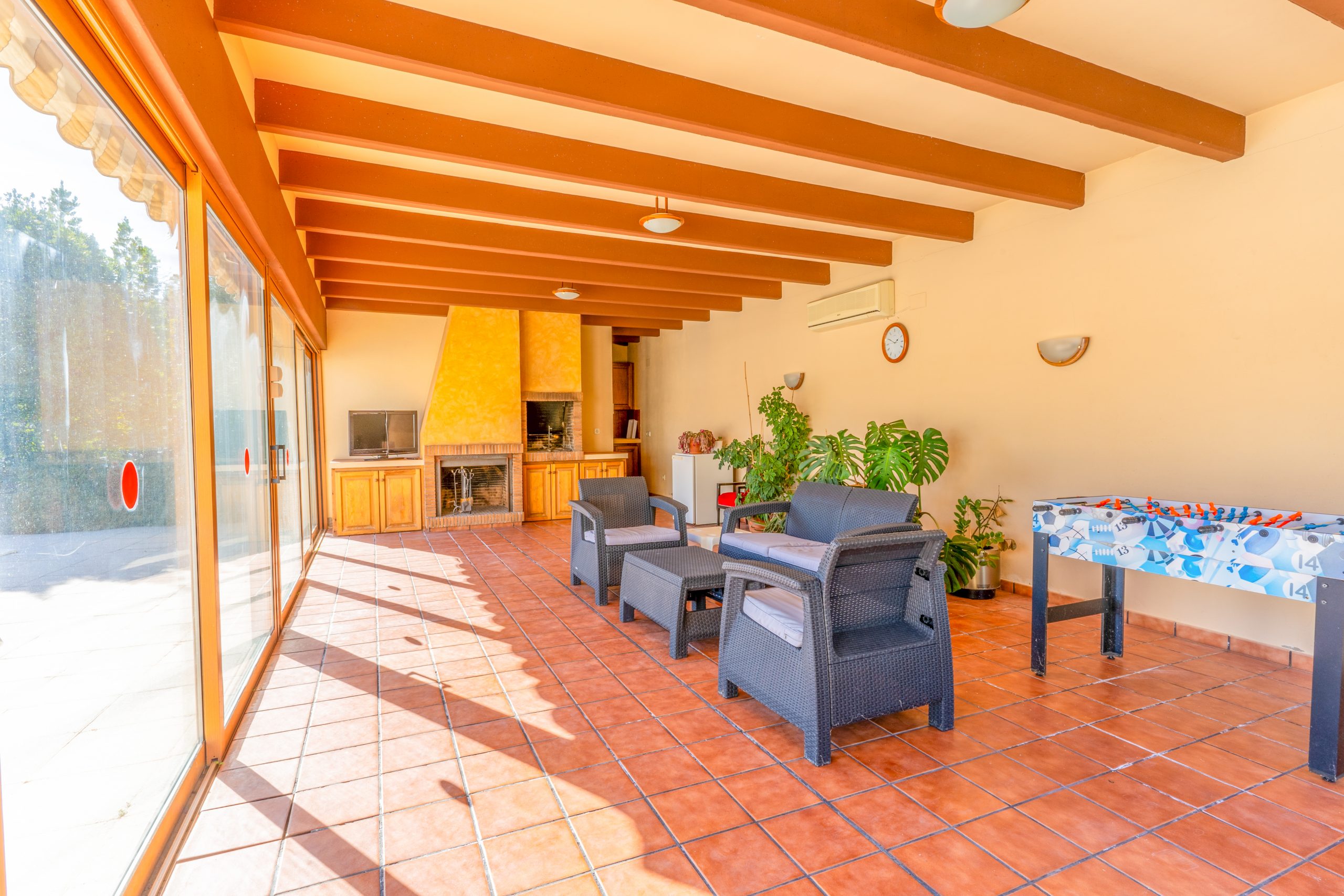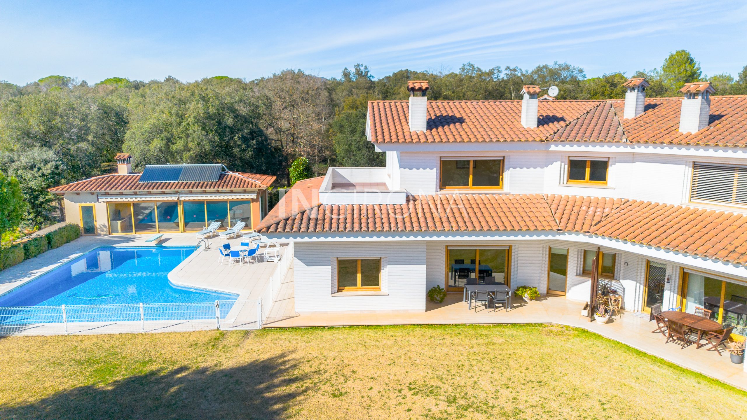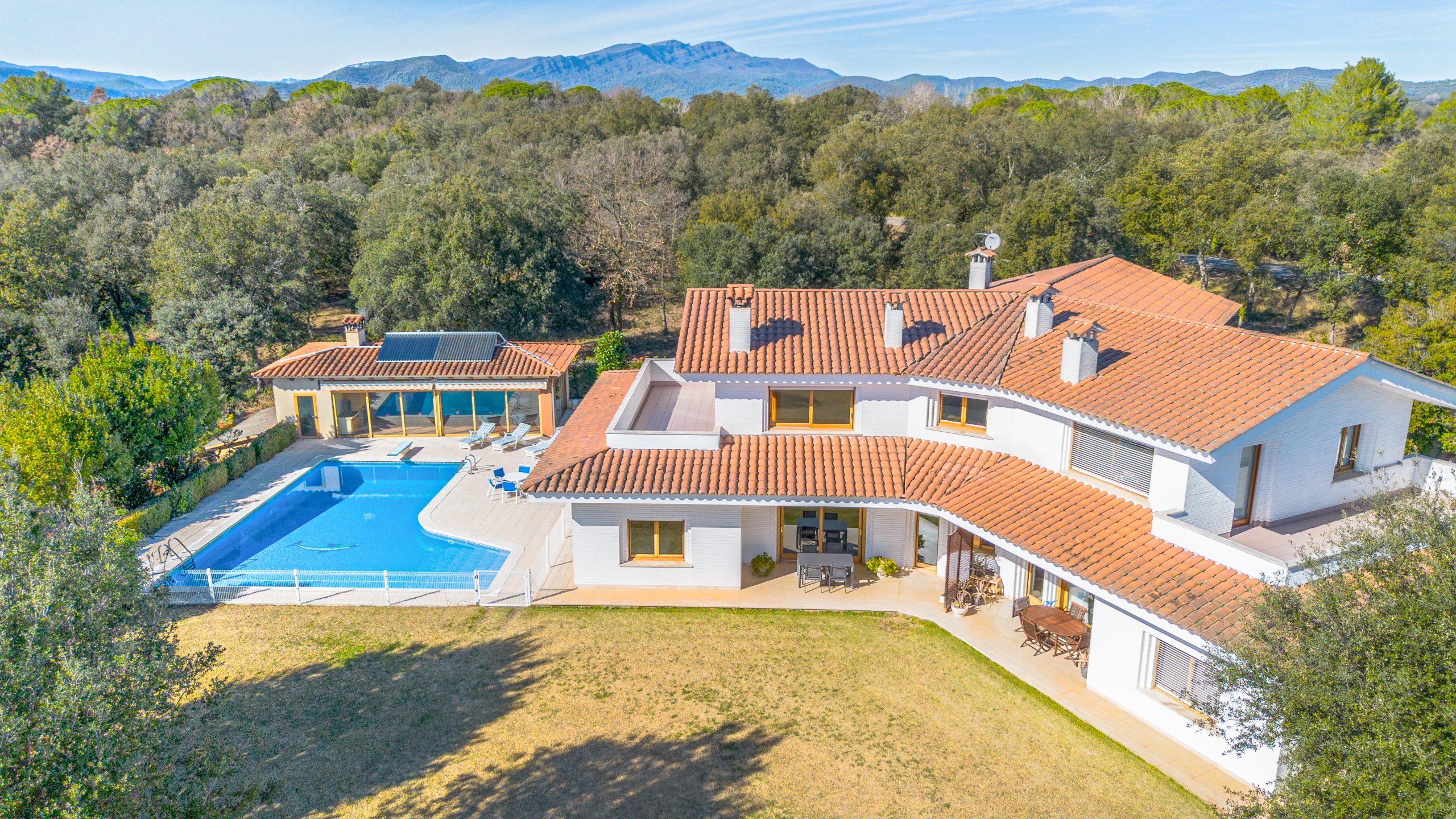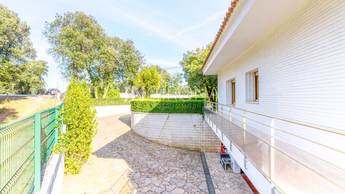 Para el entretenimiento y el bienestar, la propiedad ofrece una amplia piscina de 86,71 m2. Junto a ella encontramos un anexo diáfano de 75,46 m2 con chimenea/barbacoa, ideal para disfrutar del aire libre y realizar reuniones sociales. Además disponemos del extenso jardín llano con césped tipo grama de 2,544m2, ideal para disfrutar de actividades al aire libre y momentos de relajación. La propiedad se extiende sobre otros 4,180.07m2 anexados de terreno boscoso poblado de majestuosas encinas. Este entorno natural añade un toque de serenidad y conexión con la naturaleza.
