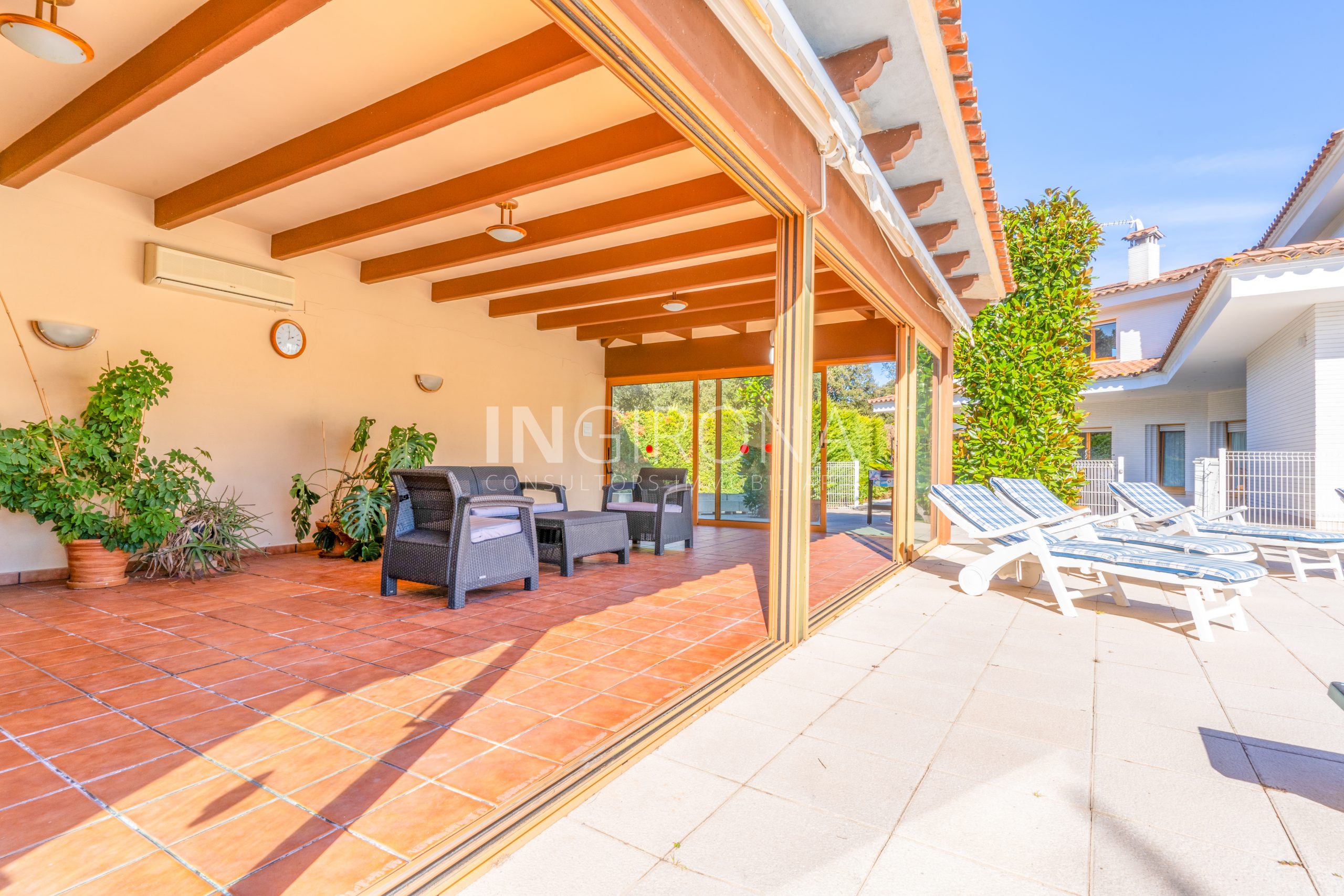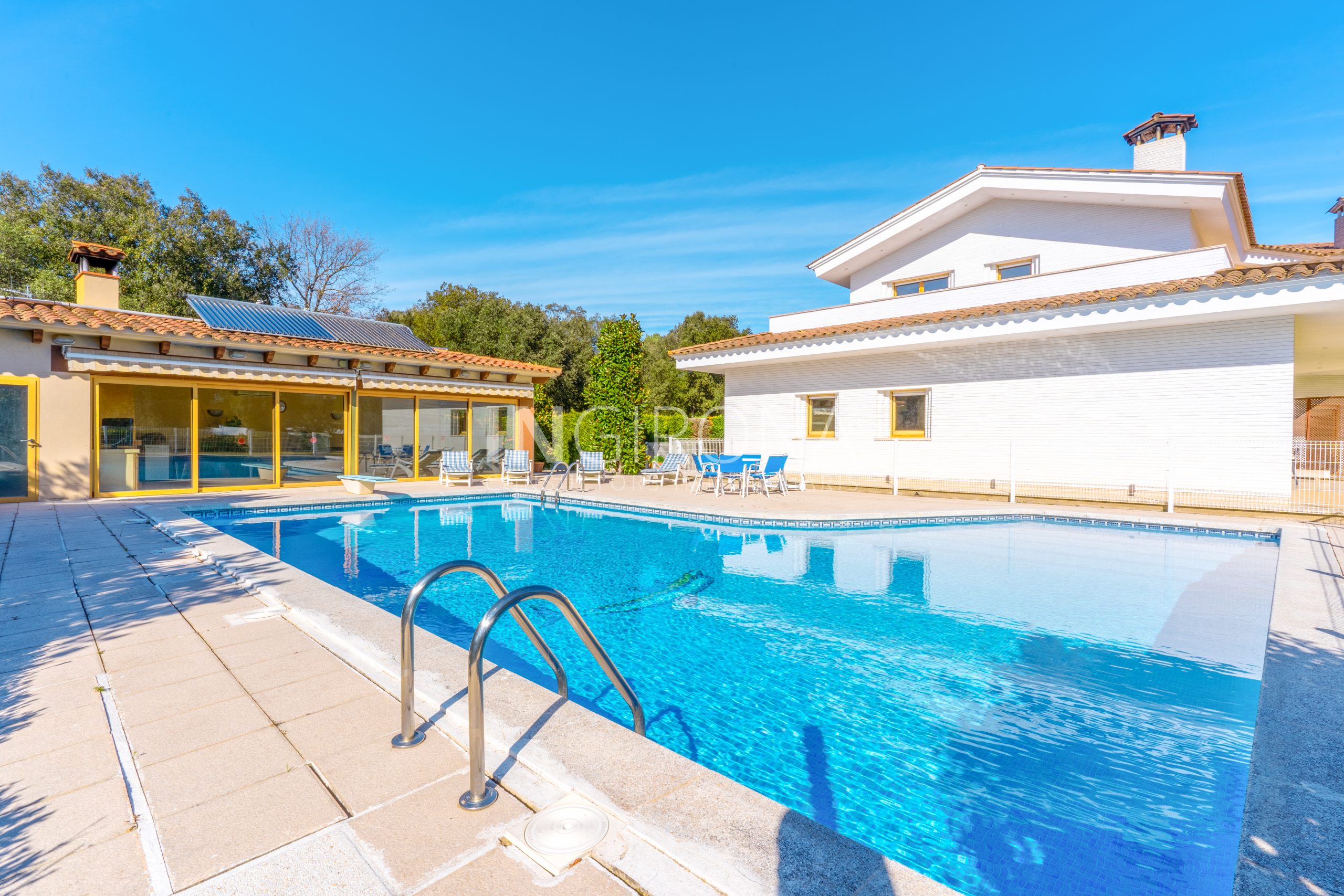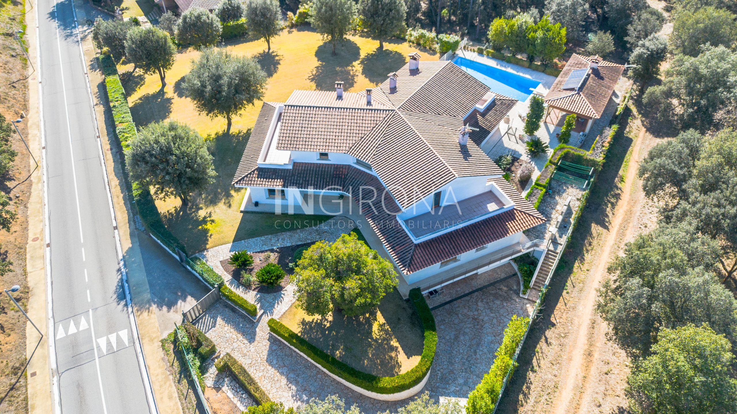Bienvenido a esta elegante chalet con piscina, ubicado en la acojedora urbanización «l’Olivet» de Sant gregori, a pocos minutos del centro de la ciudad de Girona. Construida en el año 1995 con una estructura de hormigón armado y paredes de bloque de obra vista tipo «klinker», esta propiedad se erige majestuosamente sobre una parcela urbana de m2 y una parcela de encinas de m2 haciendo una parcela total de 7.277m2 en llano y un total de 1210m2 construidos.