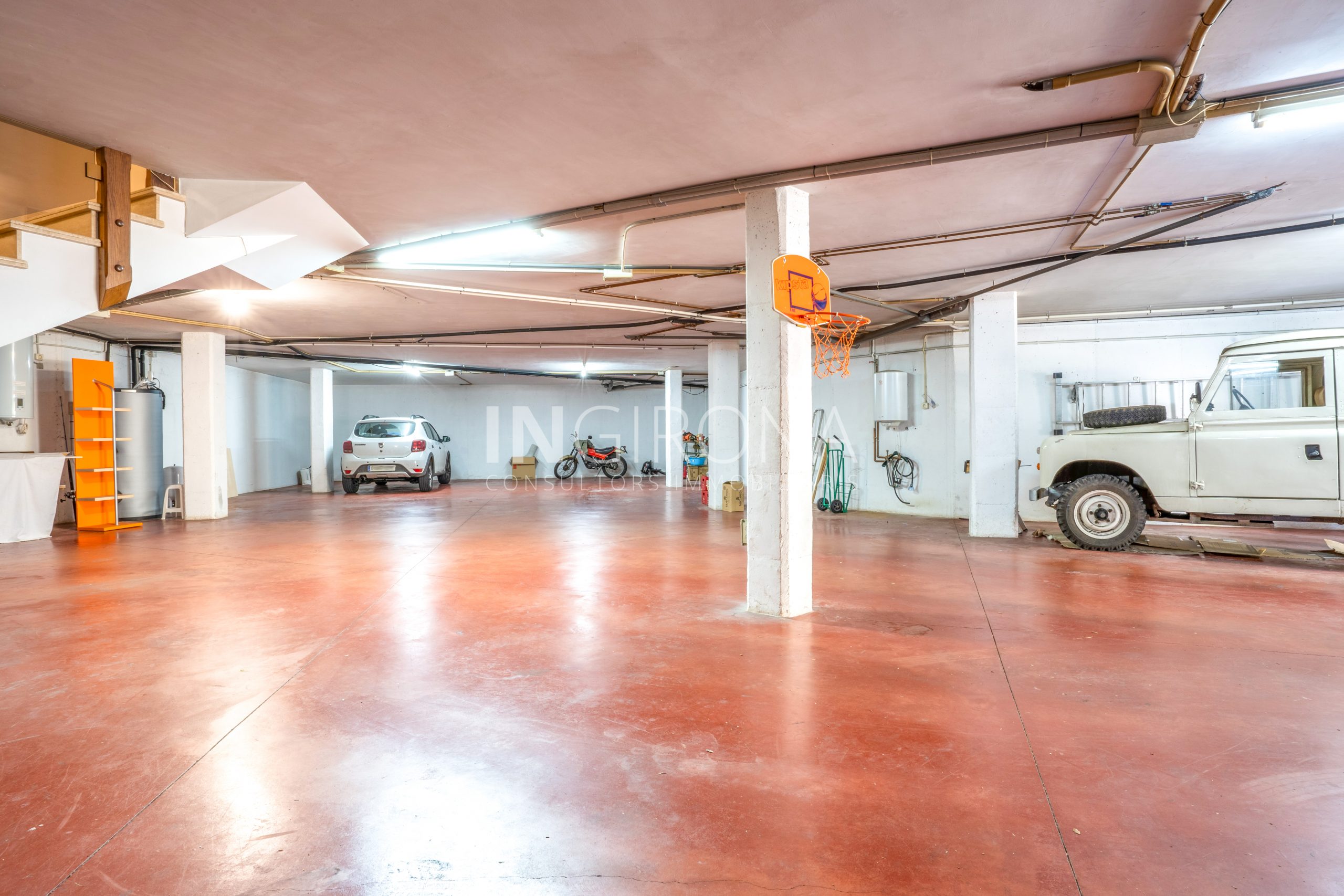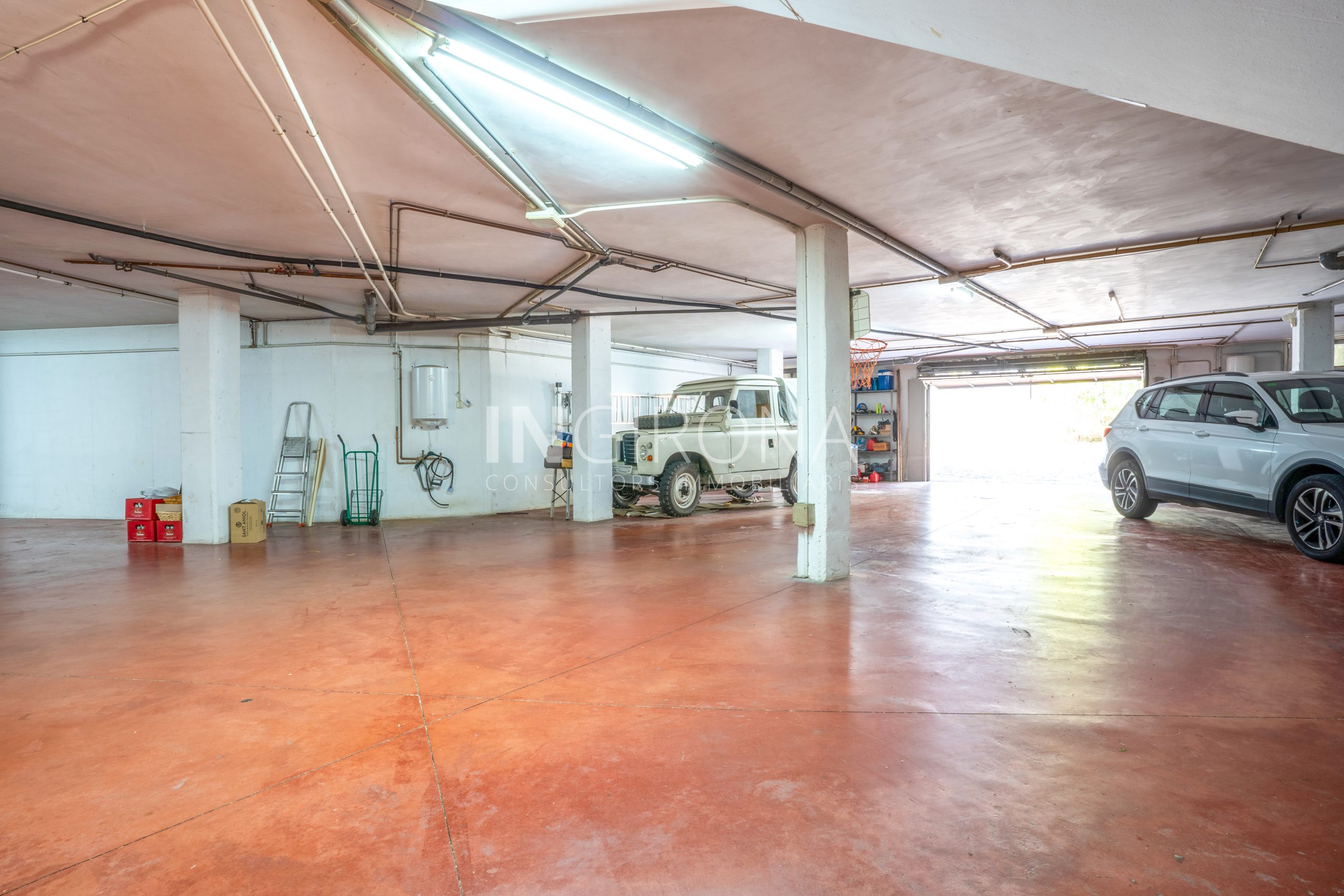 La propiedad cuenta con un espacioso garaje diáfano de 420m2, perfectamente diseñado para satisfacer las necesidades de almacenamiento y estacionamiento de múltiples vehículos. Equipado con una puerta automática de fácil acceso, este garaje ofrece comodidad y seguridad para los propietarios. Con una distribución inteligente y un diseño funcional, este garaje ofrece un lienzo en blanco para materializar cualquier proyecto. Además, su ubicación estratégica dentro de la propiedad garantiza un acceso cómodo y directo, convirtiéndolo en un componente esencial de esta exclusiva residencia.