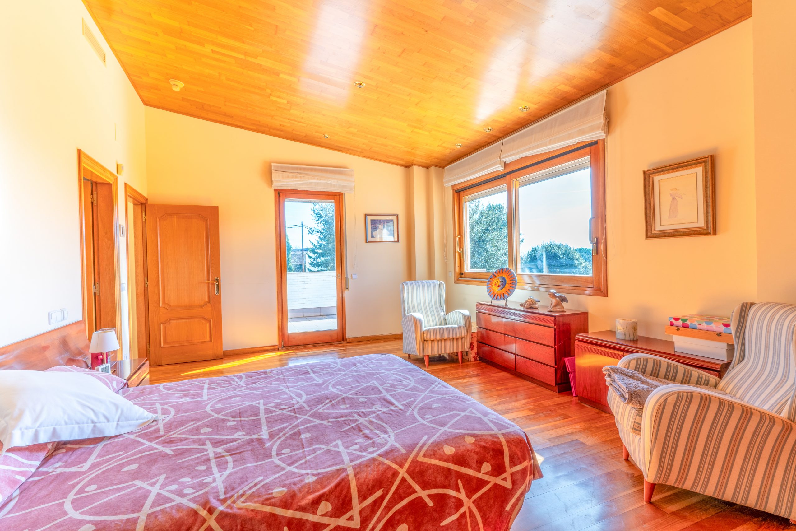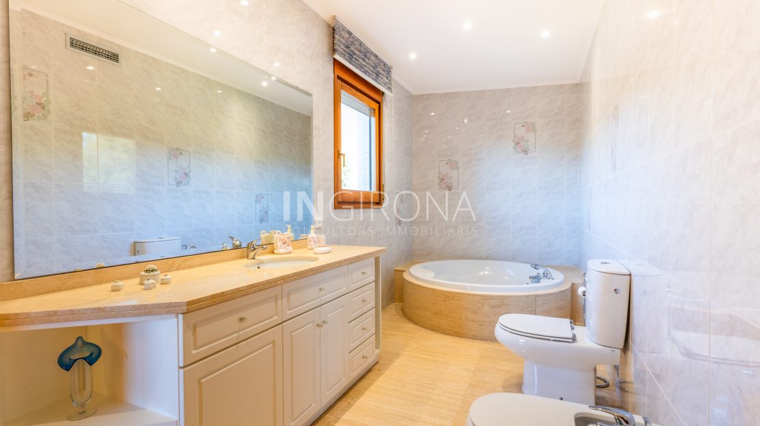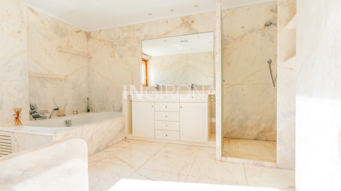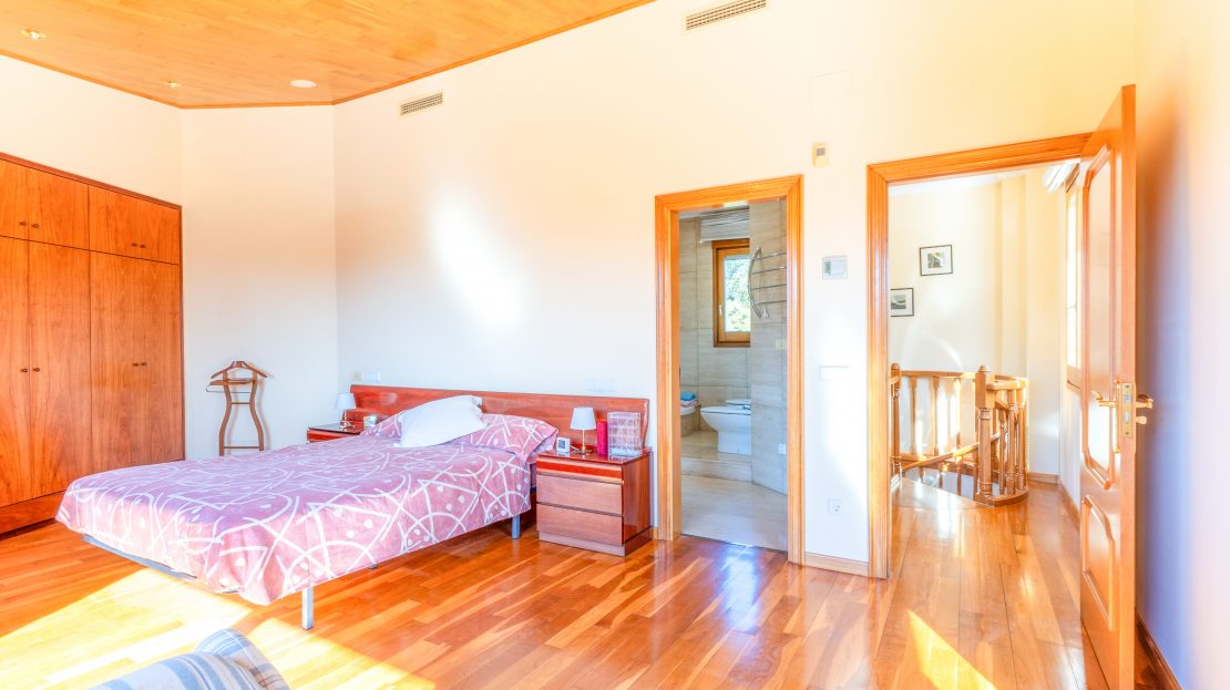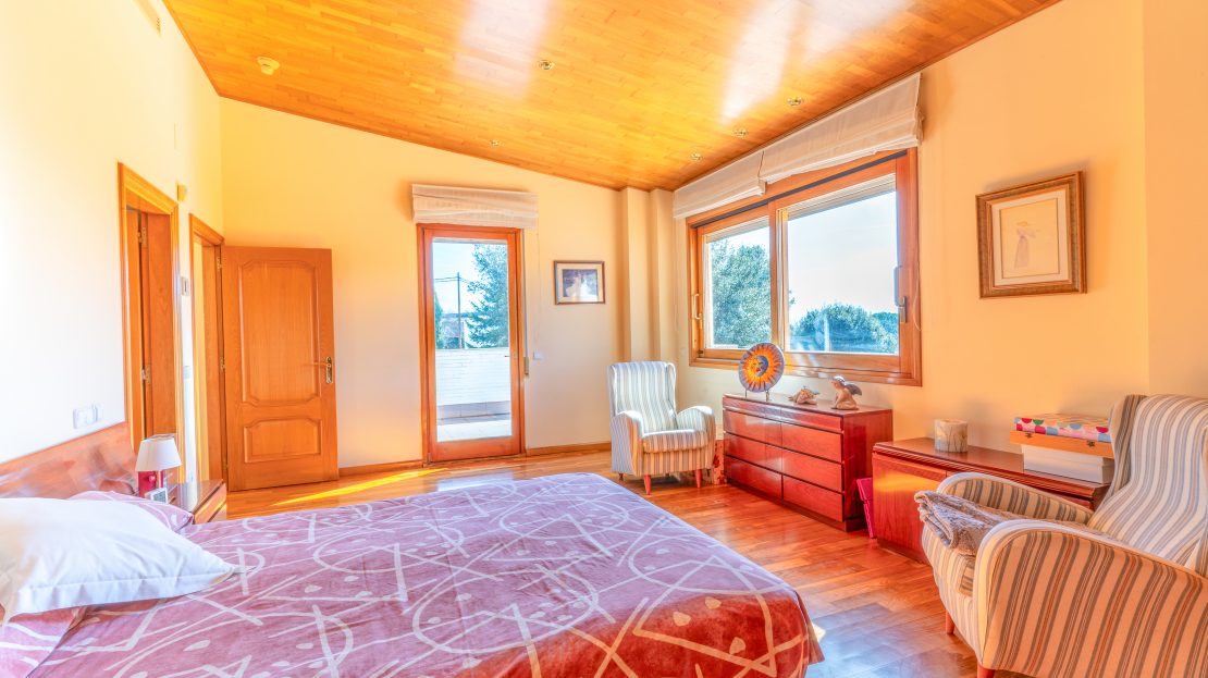 La vivienda dispone de 10 habitaciones, entre las cuales se destacan 2 suites con amplias bañeras redondas, duchas y vestidores, así como 5 baños completos y 3 aseos. Además, ofrece un espacio separado para invitados que incluye sala de estar, chimenea, habitación doble y baño, así como un área de oficina con un aseo. También cuenta con una sala multiuso adaptable a gimnasio, sala de juegos u otro propósito según las necesidades con salida a una de las tres terrazas.