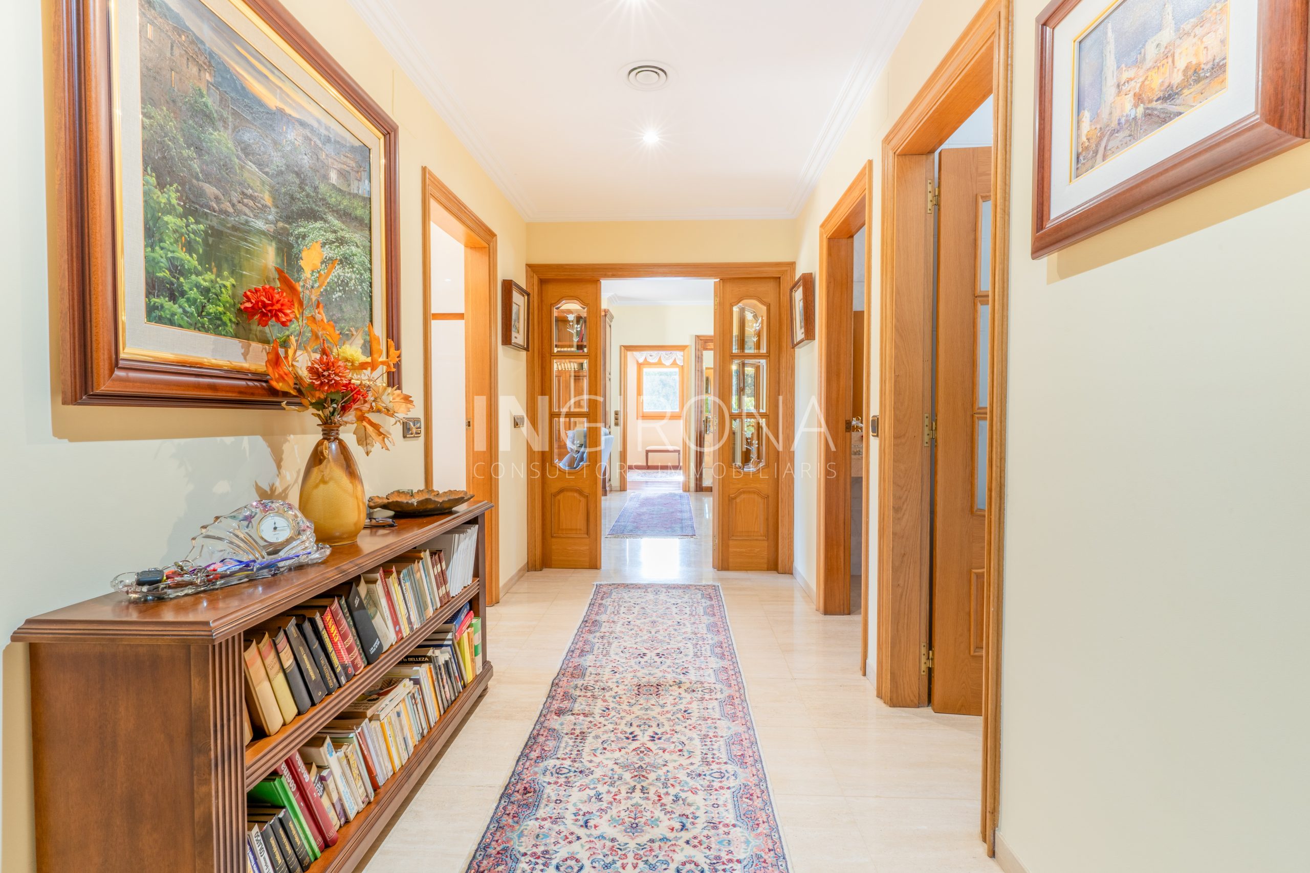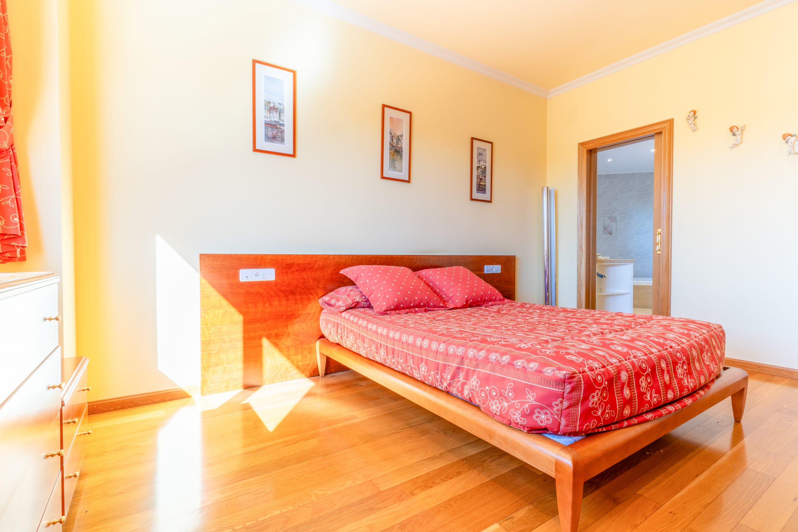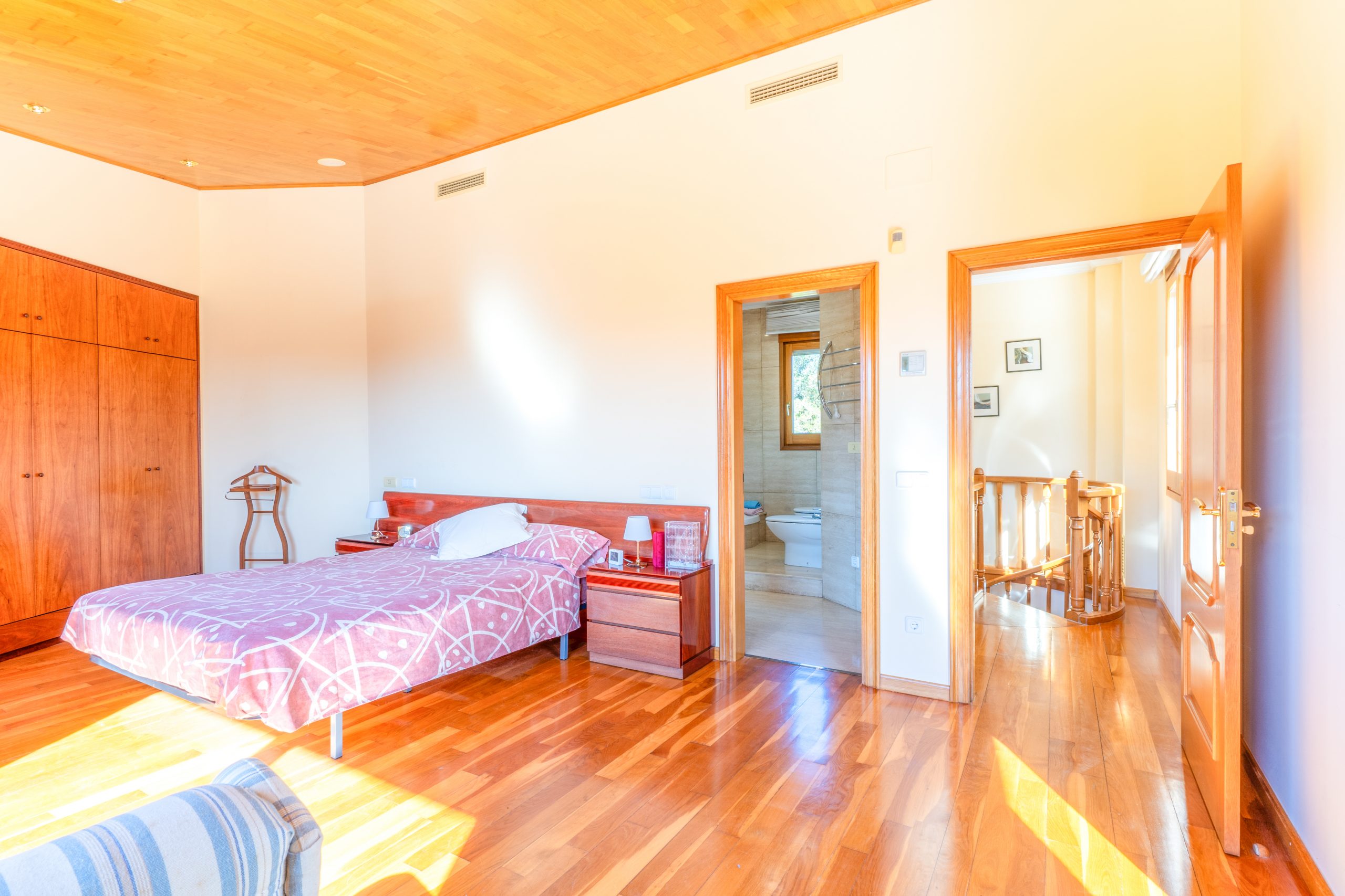 La vivienda dispone de 10 habitaciones, entre las cuales se destacan 2 suites con amplias bañeras redondas, duchas y vestidores, así como 5 baños completos y 3 aseos. Además, ofrece un espacio separado para invitados que incluye sala de estar, chimenea, habitación doble y baño, así como un área de oficina con un aseo. También cuenta con una sala multiuso adaptable a gimnasio, sala de juegos u otro propósito según las necesidades con salida a una de las tres terrazas.